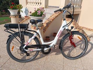 Modèle Carlina Blanc et rouge Décathlon dépositaire de la marque Modèle 2020 avec 2500kms Batterie 36V, 480Wh pour une autonomie de 70 à 80km Très bonne puissance, 4 à 5h de re