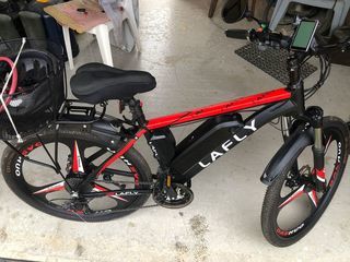 Je vends ce magnifique vélo électrique - Marque : Lafly peu servi grande autonomie batterie 36v 15A suspension avant frein a disque avant et arrières, porte bagage. État neuf N'h