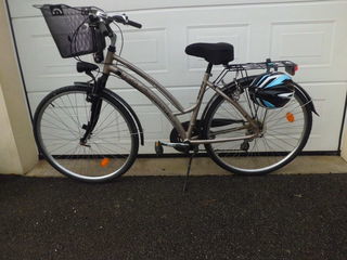 Vélo femme comprenant : 21 vitesses triple plateaux 7 vitesses commande par sélecteurs Panier avant décrochable Antivol sur roue arrière Pneus neufs Protège selle avec gel in