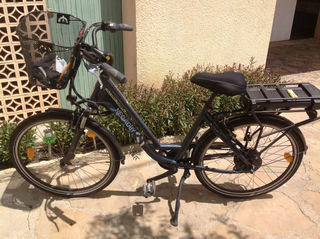 VELO COULEUR NOIR .AVEC PANIER SUR LE DEVANT. BATTERIE A CHANGER PREVOIR ENVIRON 320 € VENDU EN ETAT 200€.