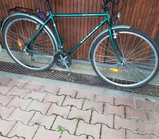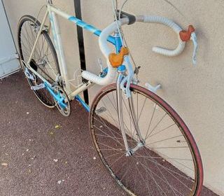 vends vélo de course bleu et blanc roues de 700 fourche chromé,freins pro star,selle cobra,pédales et guidon alu avec un logo incrusté.marque Denis Ganne très bon état général et