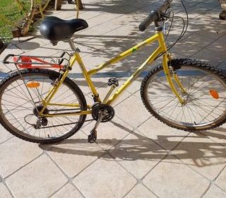 VTT ROCKRIDER 320 JAUNE, bon état, pneus 26 pouces, béquille et écarteur de danger . Pas de livraison a venir chercher sur place, paiement comptant à l'enlèvement.