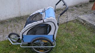 remorque vélo pour enfants très peu servie On peut s'en servir comme poussette pour deux enfants 3ème roue démontable si vélo
