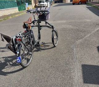 Produit : HELKAMA Etrike 2 roues frontales ; géométrie qui permet, entre autres de "passer" les chicanes souvent implantées sur le parcours des pistes cyclables, pour dissuade