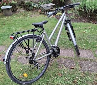 Vélo B' TWIN RiverSlide de marque DECATHLON, 3 plateaux 8 vitesses (soit 24 vitesses), dérailleur Shimano. Très peu roulé, état neuf.