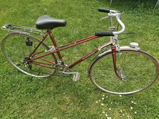 Vélo pour femme en bon état de marque GITANE, fourni avec pompe et deux sacoches, pourvu d'un plateau et de trois vitesses Si vous êtes intéressé, je vous communiquerai les coord