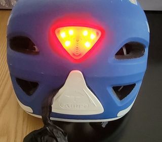 Casque léger et sûr pour homme ou femme Lumière arrière 3 positions Visière anti-pluie Capuche de pluie intégrée Fermeture magnétique Taille L 56-62 Utilisé 2 fois.