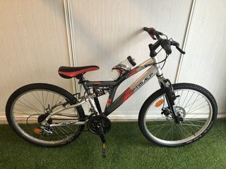 Vends VTT enfant 8à 10 ans en acier, très bon matériel robuste. Révisé par professionnel, rien à faire, prêt à rouler Frein à disque à l'avant Tout suspendu 3 plateaux, 21 vite