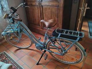 Vend vélo électrique Gitane, bleu, vintage, très peu servi, facture et mode d'emploi. Paiement en espèces.