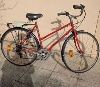 Velo NANCIA de 1984. Course transformé en loisir balade. Guidon triporteur, porte-bagage, garde-boue. Reste tout de même très léger. Triple plateau, 6 vitesses. Commandes ré