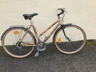 Vends vélo bambou unique. Cadre bambou et acier de fabrication artisanale, finition en ligatures vernies purement esthétique pour un look nature. Roues avec pneus neufs. Selle
