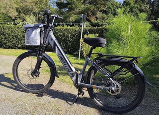 Vélo Nakamura Cyti 50 année 2017, taille M, bien entretenu. Batterie reconditionnée en février 2023. Autonomie entre 50 et 60 km. Cadran de contrôle changé il y a 2 ans. Pneu e
