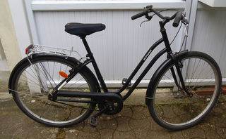 Vélo de ville Décathlon modèle Btwin ELOPS 100, mono vitesse ( une seule) frein V-Brake, roue alu de 26 pouces pneus état correct, porte- bagage avec ressort grand guidon, gran