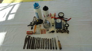 Anciennes et récentes pièces de vélos plus outillage et deux gourdes LE TOUT POUR 16€00