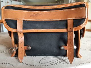 Sacoche de Guidon - marque Berthoud, cuir véritable- montage main, quatre poches extérieures+ une zippée sur le devant. Accessoire de qualité pour randonneur confirmé. Produit rar