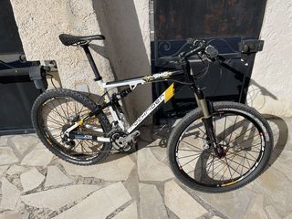 VTT tout suspendu cadre alu monté haut de gamme Shimano XTR roues et moyeux crossmax pneus tubuless sans chambre état neuf blocage fourche et amortisseur arrière au cintre vélo trè