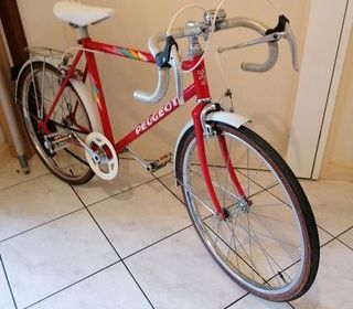 Je vous propose un tout petit vélo de course collector. Marque Peugeot modèle Mach1 de 1988 neuf jamais servi et tout d origine pour déco magasin Vintage. Taille du cadre 38 cm p