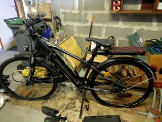 Vend vélo électrique E-FIT 100 acheté le 01/04/2017, jamais utilisé. Justificatif facture. Batterie non rechargée donc HS. Chargeur à prévoir. Compris casque, sacoche, porte-bagag