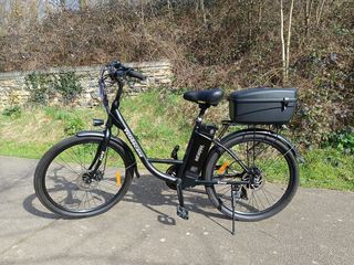 velos assistance électrique ,antivol intégré ,chargeur,suspensions a l avant,et panier trés peu servit ,achat juillet 2024 batterie,entre 60 et 80km