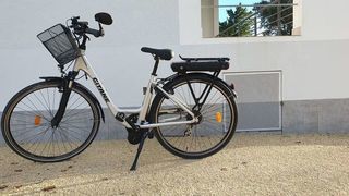 vélo électrique marque gitane tout alu avec batterie et chargeur. Peut parcourir jusqu a 30kms 5 puissances électriques et 7 vitesses mécaniques Fourche avant télescopique All