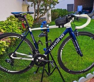 Vélo origine axome RS 350 bleu taille S pour personne 1,60m à 1,72m, très bon état groupe SRAM red etap 11vitesses selle Italia flite potence ritchey, tige de selle ritchey, roue c