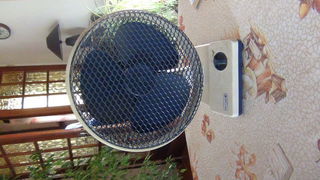 Photo N° 1 / - UN PETIT VENTILATEUR BLANC SOUFFLANT A 10 Euros - UN VENTILATEUR BLEU A 15 EUROS - UN VENTILATEUR BLANC SUR PIED OSCILLANT 3 VITESSES A 10 EUROS - UN PORTE MANTE