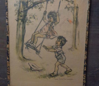 ANCIENNE ILLUSTRATION DE GERMAINE BOURET "TIENS BON LA RAMPE" EXCLUSIVITE 1917-38 ENCADREE SOUS VERRE D'ORIGINE 24,5 X 18,5 cm EN EXCELLENT ETAT ENVOI ET CONDITIONNEME