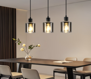 Vends une barre de trois lumière, suspendue vintage en verre pour tables à manger, avec douille E27. Cette lampe suspendue noire de style industriel convient aux salons, chambres,