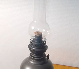 Lampe à huile entièrement en étain. Parfait état Hauteur totale 50 cm Base ronde diamètre 13 cm Récipient boule diamètre 12 cm Longueur Cylindre verre seul 26 cm, diamètre 4 c