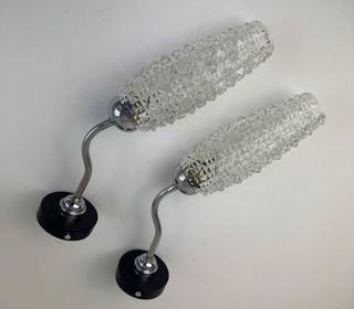 Lot de 2 belles appliques col de cygne en métal et verre pointe de diamant. En bel état général. A noter des traces sur les deux cache douille (voir photos). La base est neuve. Dou