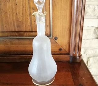 Carafe à liqueur en verre opaque en forme de poire avec 2 verres très bon état