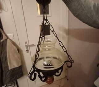 Luminaire lustre suspension verre bois ferraille Très bonne état Prix 10€ Livraison possible reims Envoi possible
