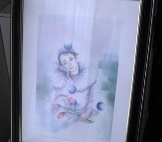 VENDS , tableau en broderie au points de croix , sous verre , cadre bois , 57 x 48 cms , à retirer à MARCQ en BAROEUL , 10 euros