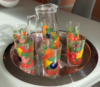 Service orangeade vintage 1 carafe et 6 verres (sans plateau) très bon état, aucune rayure