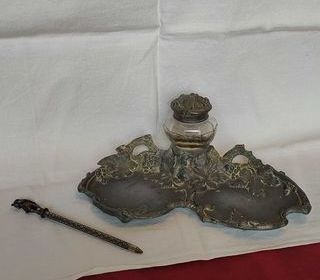 Vends+ancien+encrier+en+étain+avec+son+stylo+16+cm+(+encrier+en+vieux+verre)+longueur+24+cm+,+largeur+16+cm+,+hauteur+10+cm 160+euros+ Possibilité+d'envoi+contre+frais+de+port