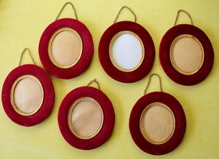 Cadres photo velours bordeaux, verre bombé 11 x 9.5 m bordure velours 2 cm sertissage laiton verre bombé fond en moire 10 euros pièce ou 50 le lot de 6 Envoi possible RMP m