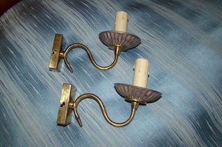 Paire d'appliques en verre opalescent - vintage années 1970 Les coupelles sont en verre opalescent. la fixation en métal doré, avec luminaire en forme de bougie Dimensions :