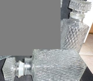 2 carafes avec bouchon, verre taillé losanges en relief, des années 70 : 5 euros pièce