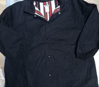 VESTE BLEUE MARINE DOUBLEE "BLEU BLANC ROUGE" 100% DEPERLANT (imperméable) capuche s accrochant sur le col talle 16 ANS 100% COTON intérieur et coton déperlant. JAMAIS P