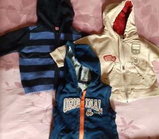 Vends un lot de 2 vestes à capuche pour garçon de 6 mois - veste sans manche marque Orchestra - la beige aussi, elle est 100% coton, la doublure de la capuche est en coton rouge