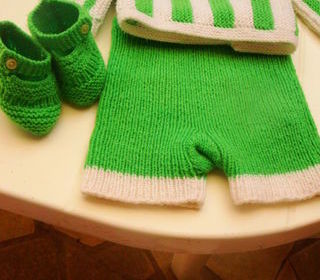 Ensemble 3 pièces veste pantalon et chaussons le tout assorti couleur vert et blanc en laine tricoté main en très bon état Nous contacter par tél ou par mail Possibilité d'en