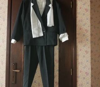ensemble pour mariage ou communion -costume 2 pièces gris: veste + pantalon long -chemise blanche col cassé -écharpe blanche