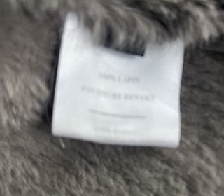 Veste de marque du fourreur Intuition en peau retournée daim gris clair, entièrement doublée lapin gris col et capuche en renard gris taille notée 44 mais taille petit je fais 38