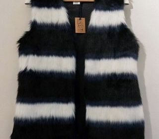 Veste blouson sans manche MOLLY BRACKEN Très pratique sur un pull, robe ou hauts divers Fourrure couleur noir/marine/blanc 3 crochets d'attache 100% Acrylique Doublure 100% po