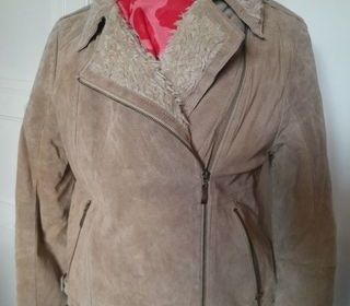 Veste en peau de couleur beige en parfait état, très agréable à porter -