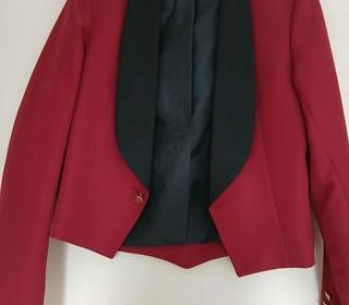 Belle veste spencer neuve manches longues rouge col satin noir N°1421 A prendre sur place uniquement veste mixte, juste bouton à changer, 2 boutonnières Verste marque Monza