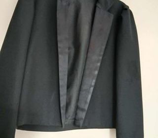 Belle veste spencer manches longues noire col satin noir N°1420 A prendre sur place uniquement Belle veste spencer manches longues noire col satin noir, évasée jusqu'en bas In