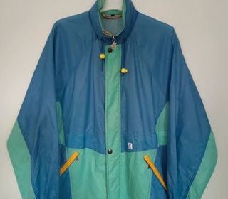 veste coupe vent, K-way vintage bleu et vert, petites touches de jaune très bon état, petite tache en haut du dos voir photo marque K way taille S