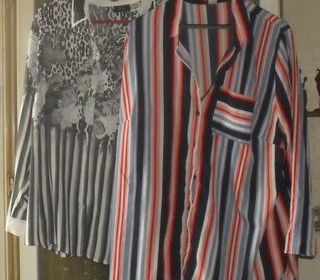 2Chemisiers Légers Femme Tailles 52 En excellent état. -Le chemisier imprimé noir de la marque Paola taille 52. Longueur: 73cm. -Le chemisier imprimé multicolore. taille 5