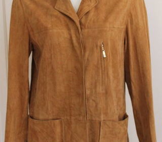Veste veau velours camel ERIC BOMPARD T.M cuir veau velours H 70cm aiss 48 cm 2 poches + 1 zippée fermeture pressions sous patte TBE (légère patine d'usage) Envoi possible